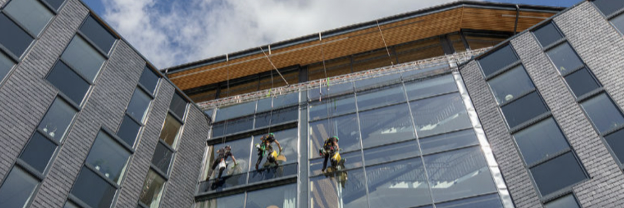 Dagens byggnader blir högre och högre och i dagens arkitektur använder man sig av väldigt mycket glas. Detta medför dock att det kan vara svårt att utföra fönsterputsning på ett traditionellt sätt. Istället för att använda stora dieselliftar som både påverka miljön och som kan orsaka skador på mark vid fastigheten kan vi erbjuda att utföra fönsterputsning med hjälp av Rope access.